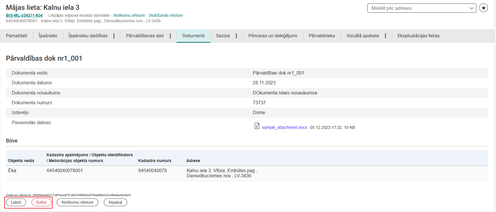 - Ekspluatācijas lietu sarakstā atver dokumenta detalizēto skatu, nospiežot uz tā nosaukuma;