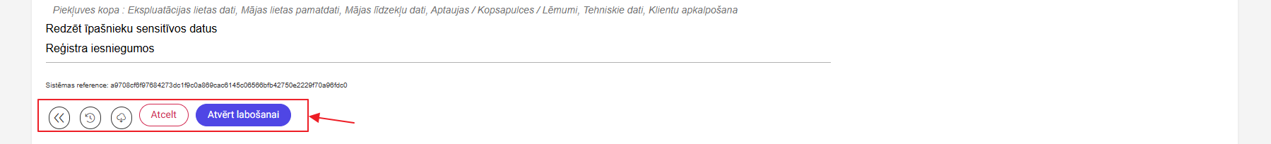 Izsniegtu, saņemtu pilnvaru vai deleģējumu par ekspluatācijas būvi var atvērt no attiecīgā pilnvaru saraksta, nospiežot uz konkrētā ieraksta rindas. Detalizētajā formā iespējams apskatīt notikumu vēsturi, lejupielādēt datni un atgriezties sarakstā.