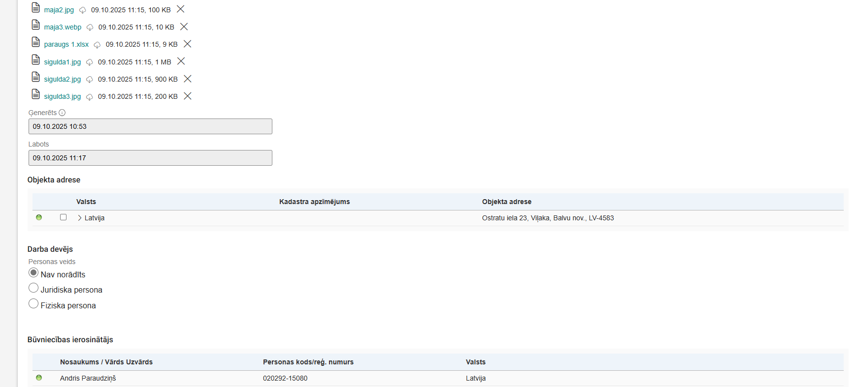 Attēls. Informācija par ieraksta ģenerēšanas un pēdējās labošanas datumu un laiku.