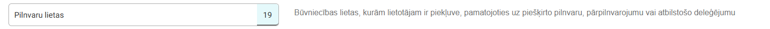 Pilnvaru lietas - būvniecības lietas, kurām lietotājam ir piekļuve, pamatojoties uz piešķirto pilnvaru, pārpilnvarojumu vai atbilstošo deleģējumu;