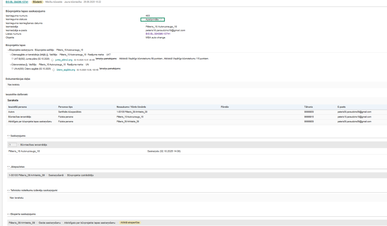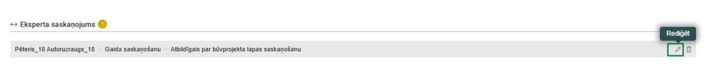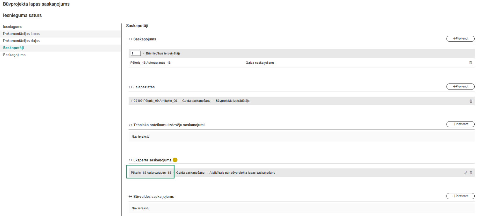 - Eksperta saskaņojums – saraksts ar personām, kurām jāsaskaņo būvprojekta lapa;