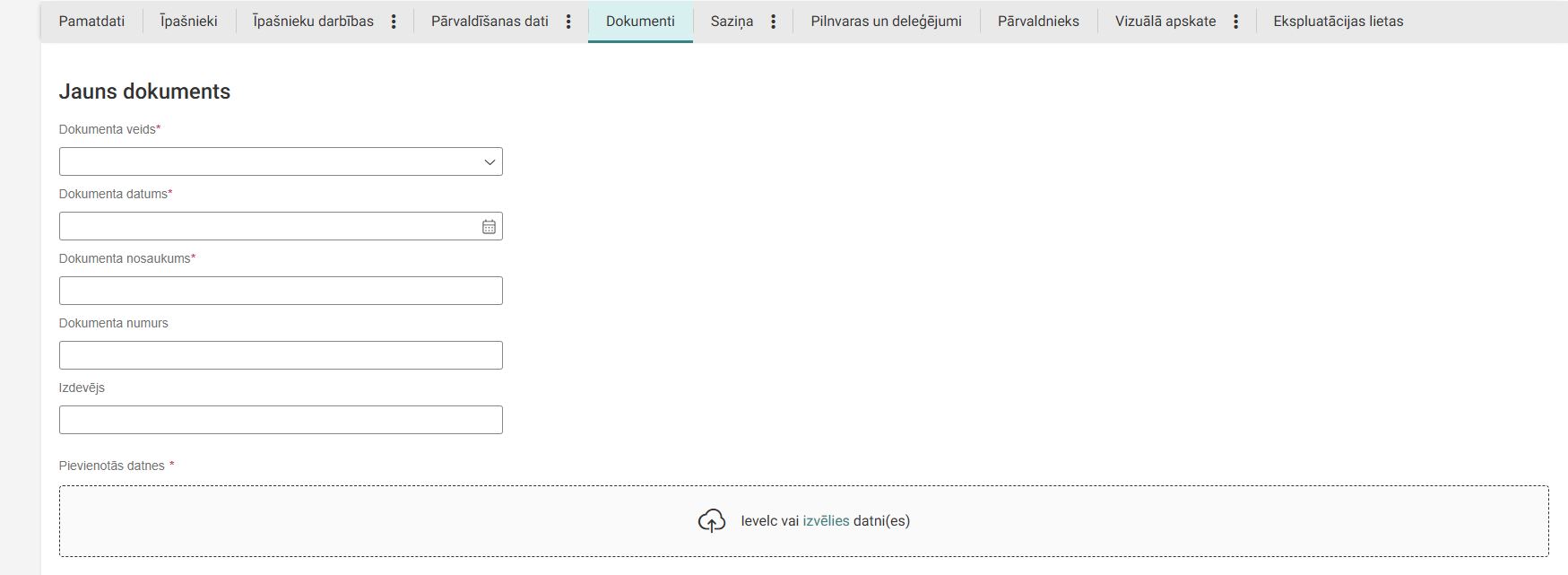 Pievienojot dokumentu, lietotājs norāda informāciju:
