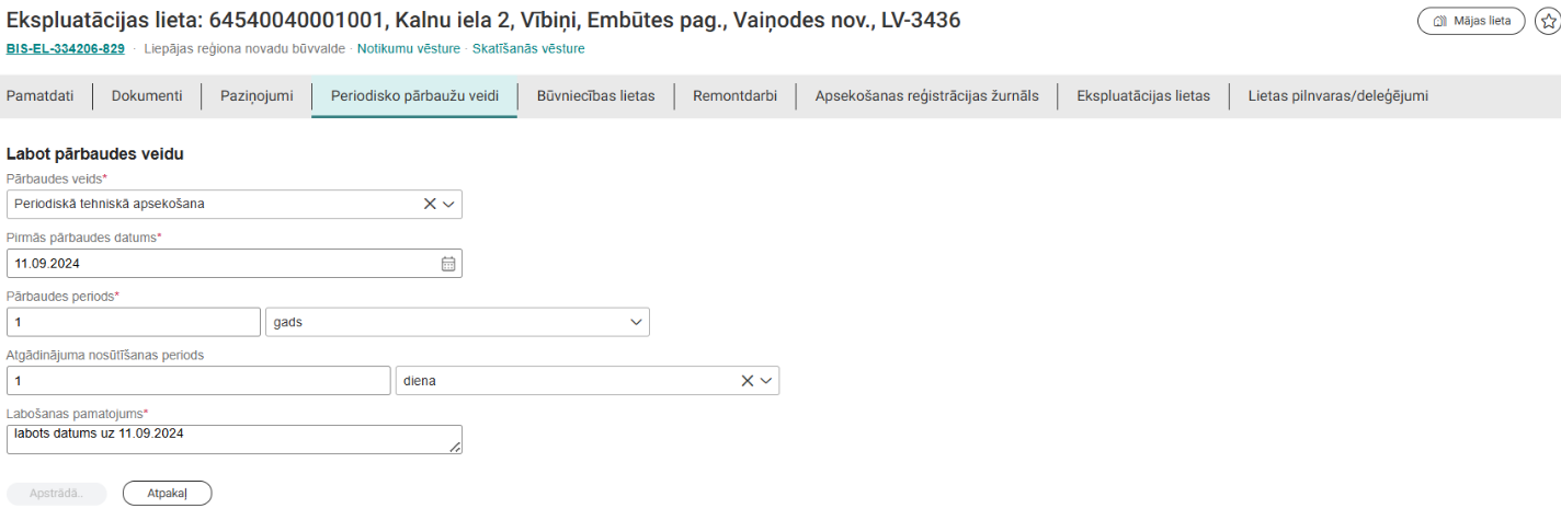 Attēls. Labot periodiskās pārbaudes veida ierakstu.