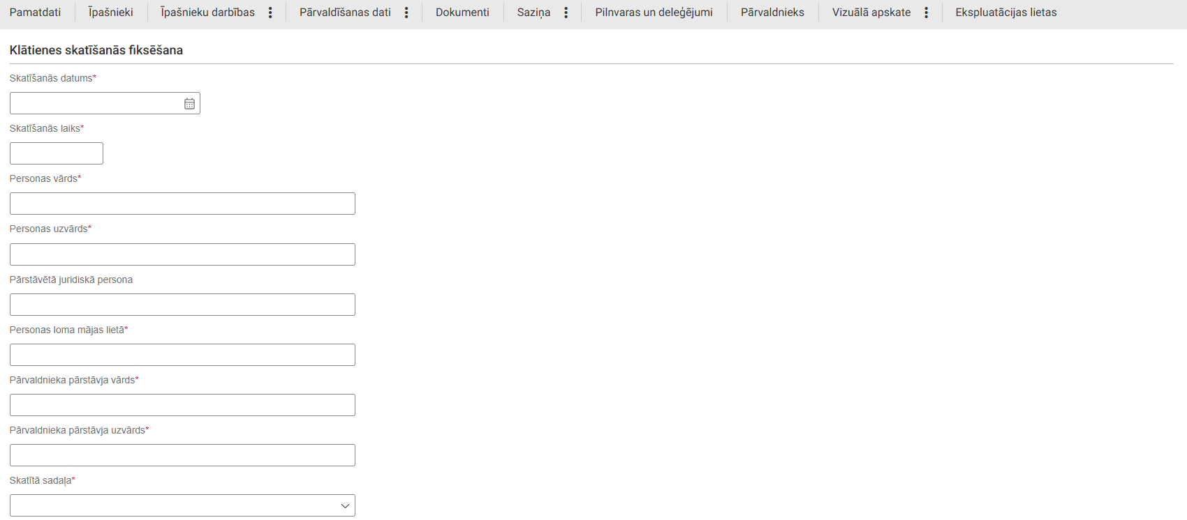Atver BISP Māju lietā sadaļu "Skatīšanās vēsture", un izvēlās darbību <Fiksēt klātienes skatīšanos>.