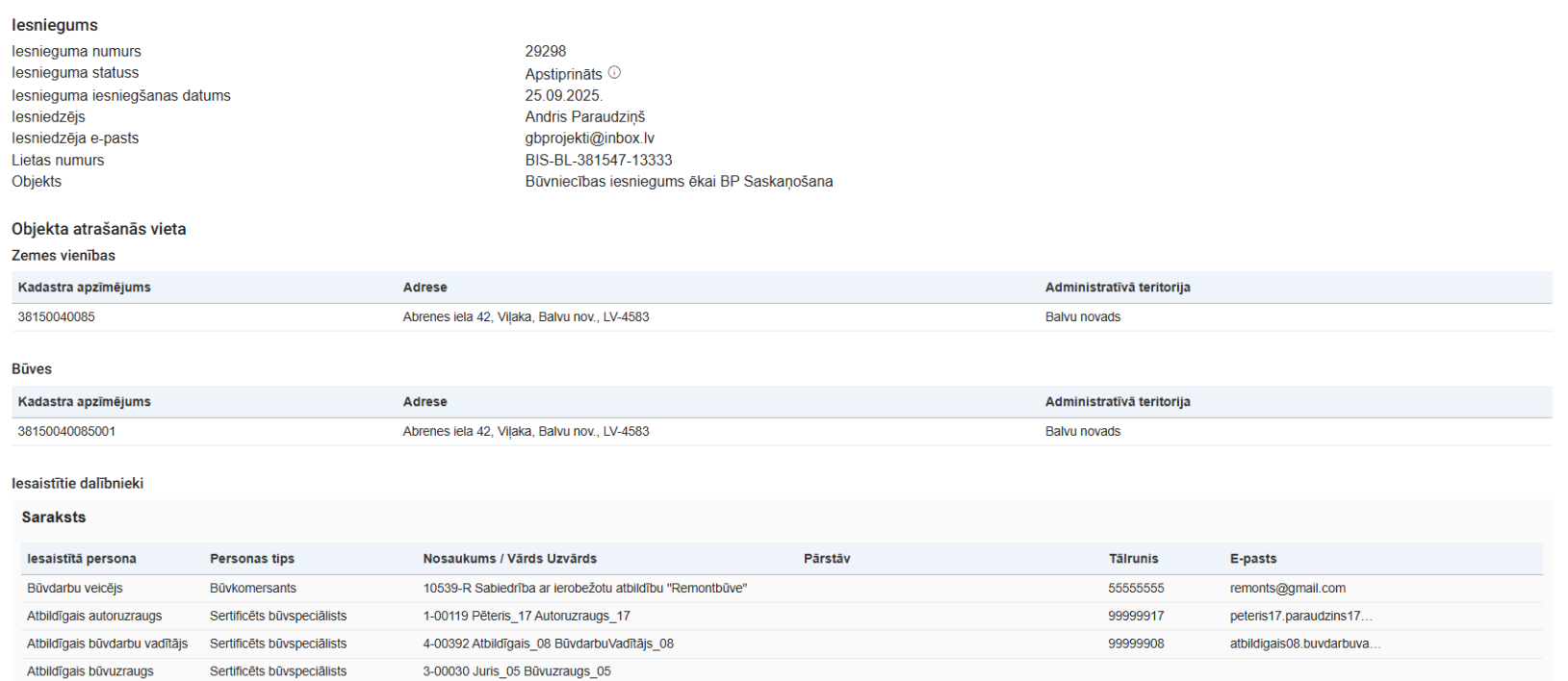 - Iesniegt - iesniegt dokumentu Būvvaldei un VDI;