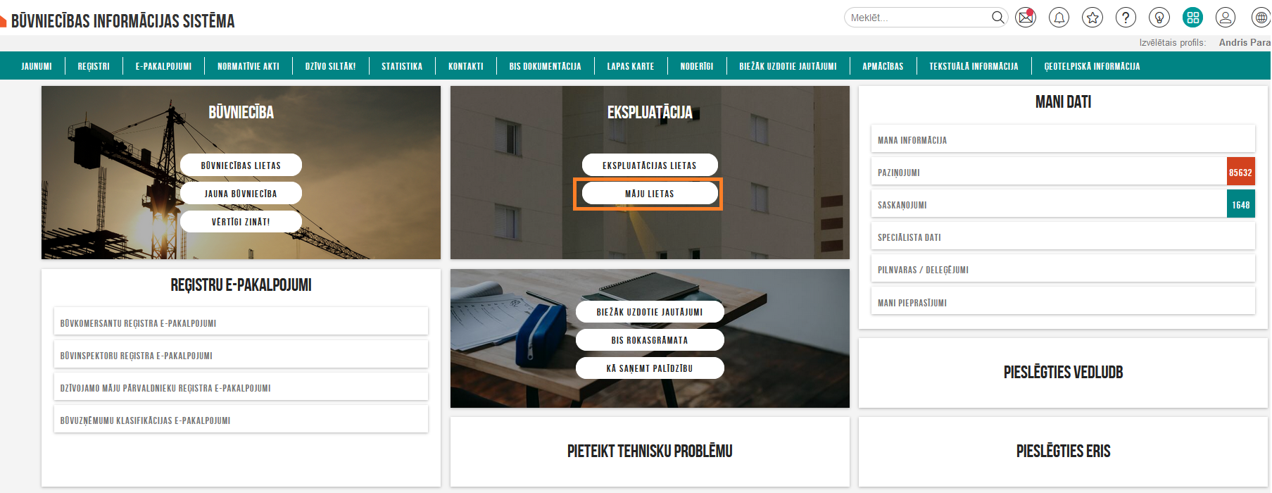 Otrā iespēja: Iegūt piekļuvi BIS un darboties pašai. šādā gadījumā Šajā gadījumā Jūs varēsiet BIS sekot līdzi būvniecības procesam kā būvniecības ierosinātājs, veidot pilnvaras, u.d.c..