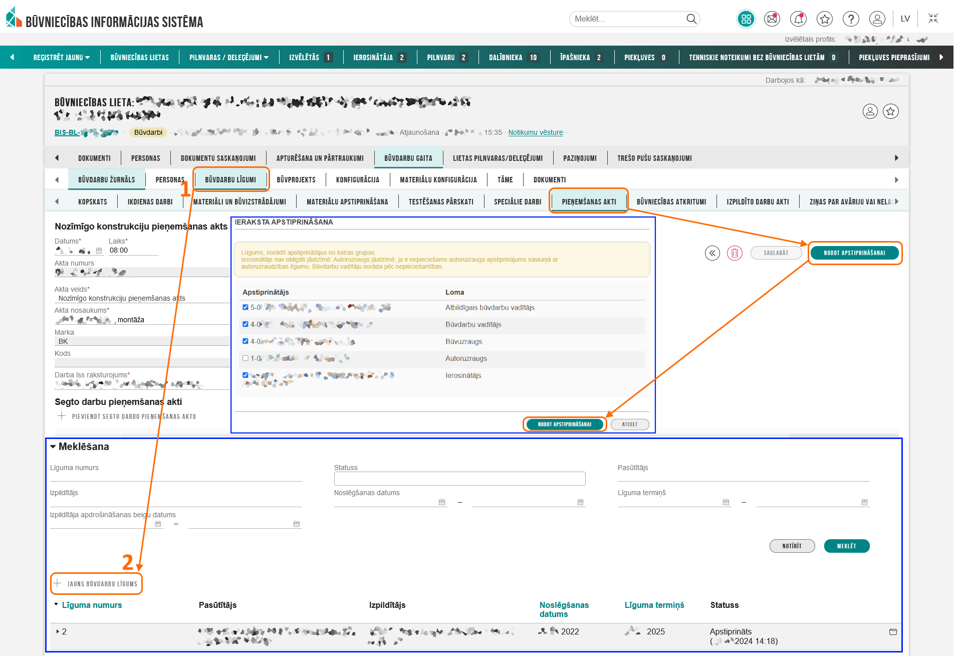 1. Būvspeciālistam iesniegums sistēmā ir jāsaskaņo tādā veidā dodot savu piekrišanu tikt nodarbinātam pie komersanta.