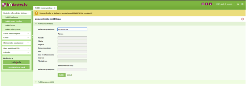 Aizpildot apliecinājumu par būves gatavību ekspluatācijai, uzrāda "Kļūda ievadītajos datos". Iespējamais kļūdas skaidrojums - “ Kļūda: Kļūda ievadītajos datos. "Zemes gabals" => Kadastra apzīmējums: Ēka vai zemes vienība nav atrasta. "Zemes gabals" => Kadastra apzīmējums: Ēka vai zemes vienība nav atrasta.”.